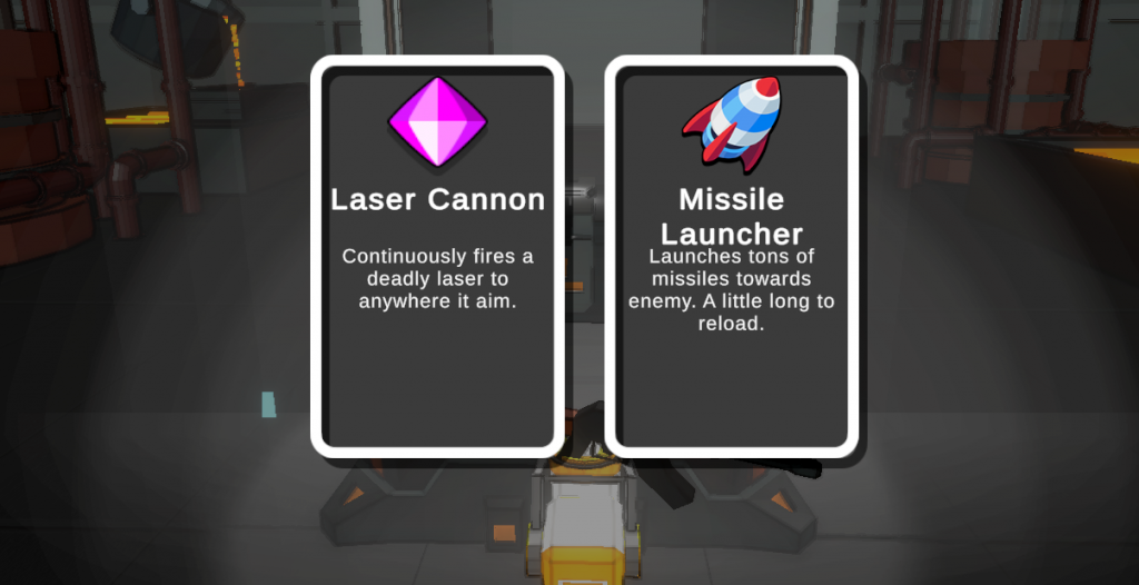 The basic idea is that, you are the last robot solider fighting for human, and have to challenge a tower taken over by rebel robots over and over again. You cannot turn back but keep moving forward, level up and unlock new weapons / abilities on the way, choose reward rooms and fight bosses!